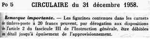 Cette mention est inscrite sur les carnets jusqu'au 13 mai 1950 c'est à dire la marianne de Gandon 15fr rouge